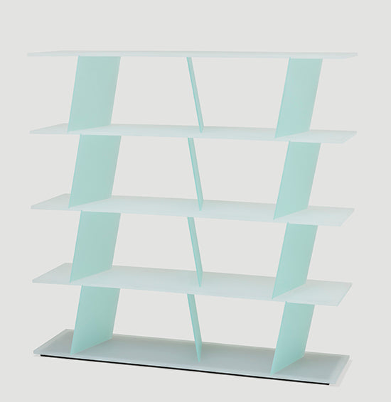 OBLIQUE Shelving is a tribute to recycling, to the aesthetic of mat acrylics, and to the legacy of Boris Berlin. Is it as much an exquisite sculpture as it is a functional shelving system.
